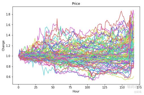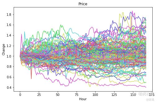 去除这 18 个币种后,剩下 100 个币种,其价格走势如下图所示: