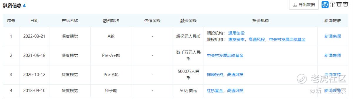 自成立以来,深度视觉也屡获资本的关注。据天眼查数据显示,截止至今,深度视觉共收获4轮融资,通用创投、惠友资本、高通风投、红杉基金等多家知名机构纷纷融资,其中,最近一轮融资金额超亿元。