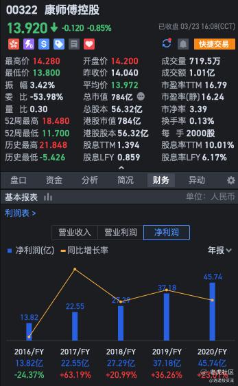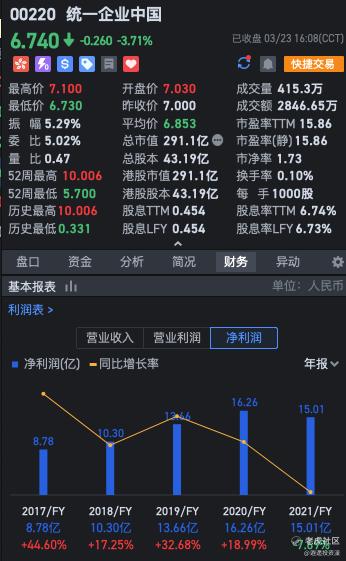 统一企业中国(00220)4年平均增长率14%,2021年净利润下滑了7.7%,不知道是一次性的还是会持续,目前16倍市盈率偏低,谨慎选择(⭐️)