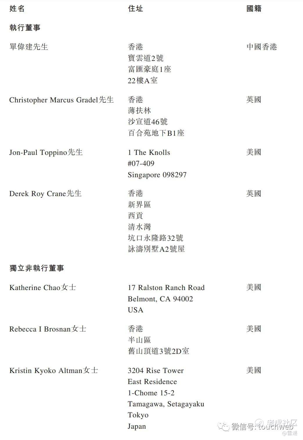 从董事会情况看,除了单伟建是中国香港籍,其他董事会成员均为美国人。