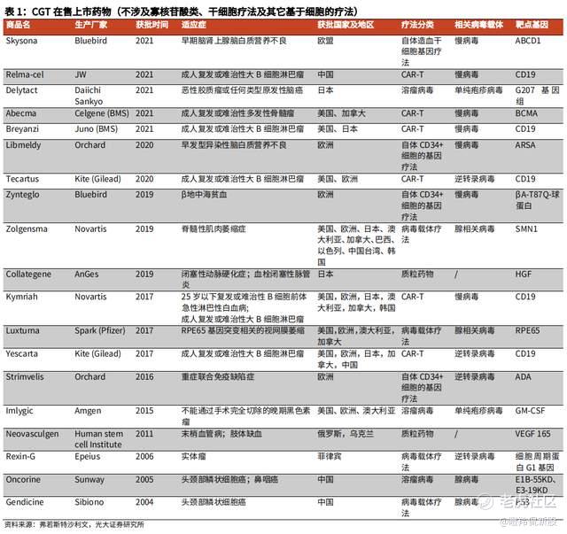虽然是预估,但也展示了国际巨头对这款产品乃至这个领域充沛的信心,同样也透露出了:未来CGT疗法带来的宏大投资机会。