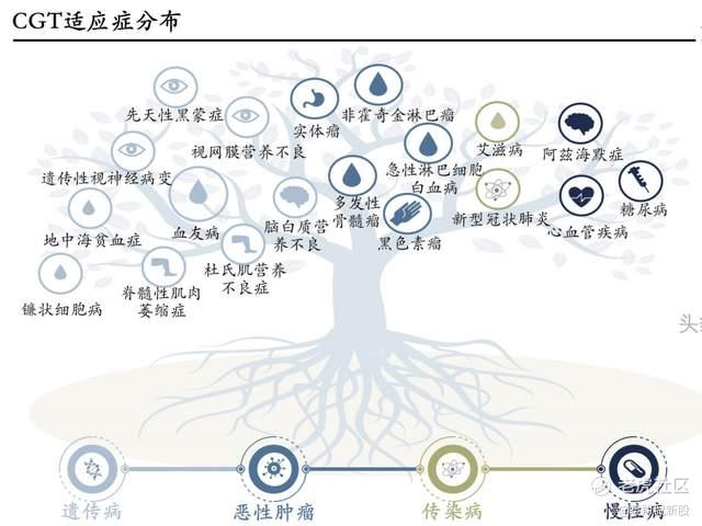 CGT疗法从一开始的应用于罕见病,逐步广泛应用于恶性肿瘤、感染性疾病、心血管疾病以及自身免疫性疾病。