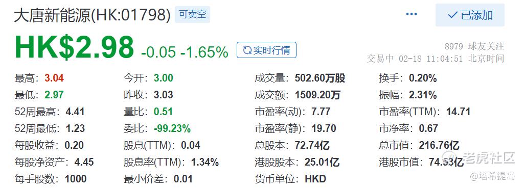 大唐新能源总市值:216.76亿,中广核新能源总市值:229.56亿。
