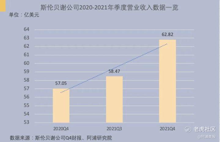 - 2021年斯伦贝谢公司第四季度营收为62.82亿美元,同比2020年Q4的57.05亿美元增长10.11%;环比2021年Q3的58.47亿美元增长7.44%,营业收入呈稳中向好趋势。