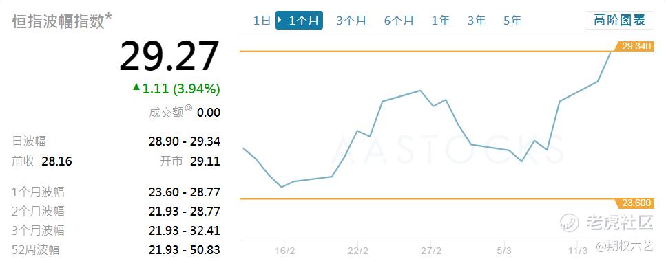 昨日恒指表现时好时坏,美银消息飘忽,日盘见19800表现不错,可夜盘再入月内谷底。看好/坏都有的说,股市非理性变化,用正常思维入场亦不见得大利。近日衍生品交易非旺,现货成交也一般,期权若当此时,成交不增都是降,反而淡了许多,成熟者亦观望。早已说恒指月初不差,提早下行事出有因,本周若难回20000-20200之上,下半月还寻底19000之下。19800可视短期分界,贴近布置值博率亦高些。事前在场事后收获是交易之道,追涨杀跌的追逐,多年之经验,往往投机不成失把米。上周五上午获利后,若19500-19600入场双买勒束,至今无利而受备萎缩,周期权长仓持仓三日时间不断,再有两日近到期,大波动后常有横行。赚波动非看了波动再追,双买入场时机很重要。波幅指数升上29,期权金偏高小心入手,未来两日萎缩加速,赚不到易劲亏。双买本周未入场,赚小钱赔大钱概率大,与末日期权比非常不值。与其肉搏不如巧取,成熟交易者是别人皆醉我独醒,别人欢呼已收获。 $恒生指数主连 2303(HSImain)$ $恒生指数(HSI)$ $腾讯控股(00700)$