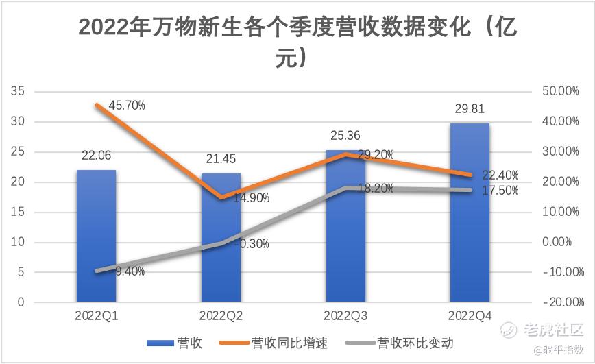 而防御性资产价值,则体现在他们优秀的业绩和目前较低的估值上(PS只有0.49倍)。根据公司四季度及全年的财务数据,已经非常能够佐证这一观点,让万物新生在一众要么低增长、要么负增长的互联网科技股面前,显得非常优秀: