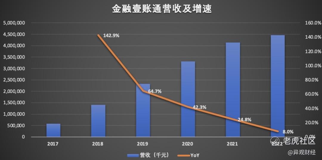 异观财经通过梳理金融壹账通近六年数据发现,金融壹账通营收持续增长,但同比增速却出现下滑的趋势。