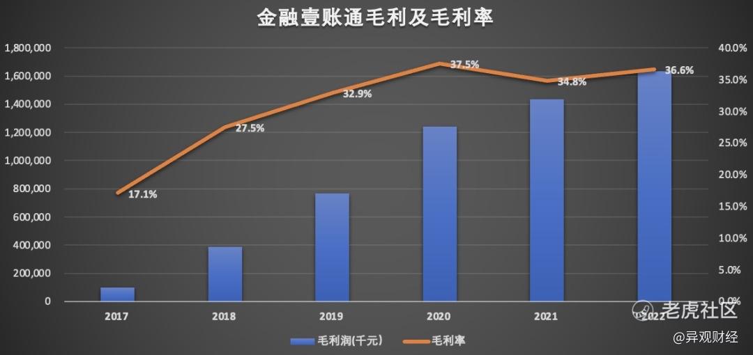 年报显示,2022年金融壹账通的毛利润为16.4亿元,同比增长13.8%,毛利率同比上升1.8个百分点至36.6%。