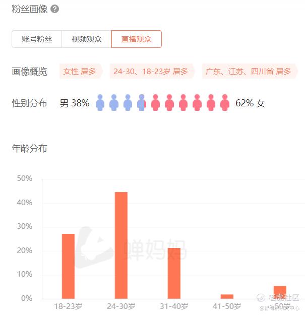 潘哥发现,蝉妈妈数据显示:作为椰树猛男直播主阵地,抖音“椰树集团海南椰汁饮料有限公司”账号,近两周的直播观众62%为女性,其中又以24岁至30岁女性为最多,占全部女性观众的44.5%。