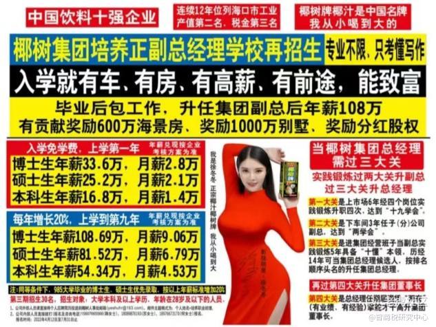 而在另一边,“从小喝到大”的广告语,疑似带有生殖崇拜的瓶子,高薪招聘的土味儿广告,也让椰树成为热搜常客,省下了不少宣传费用。