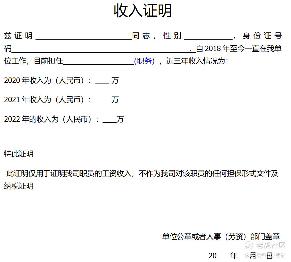 ② 收入证明=近3年年均收入不低于50w(收入证明模板可参考文件)