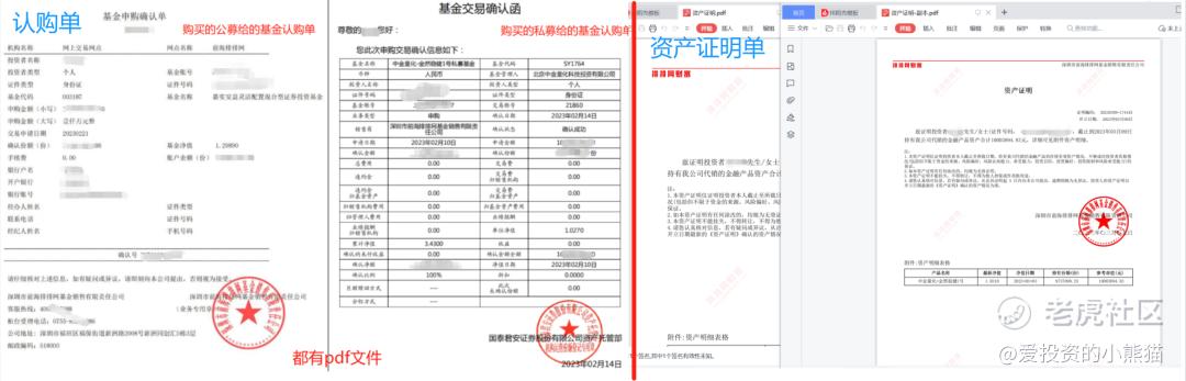 最近这段时间大家尽可能的搞定港股PI认证的材料,PI认证就是专业投资者认证,比如下图这个我们购买的基金,都会有公募基金认购单和私募基金认购单这个pdf文件或者是基金的资产证明pdf文件,这些可以上传到券商那边做PI认证的材料,而且还是带公章的更加容易通过。国内的流动资产证明文件都可以做海外券商或基金PI认证的材料。