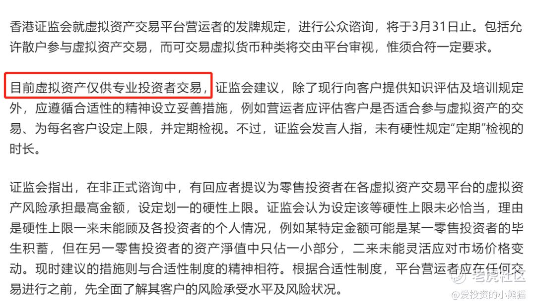 5.香港合法的虚拟数字货币。香港证监会颁发了虚拟资产牌照,券商那边合法合规的虚拟资产仅供专业投资者交易,这个还是香港证监会建议的,所以有关于这方面的任何活动和内容只有PI客户才会有权限了解清楚。
