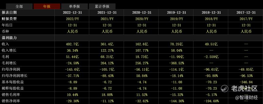 2022年全年蔚来实现营收492.7亿元,同比增长了36.34%,实现了连续4年的正增长。但利润表现方面,蔚来归母净利再度亏损超百亿,且亏损金额创2017年来新高,净亏损145.6亿元,同比下滑37.71%。