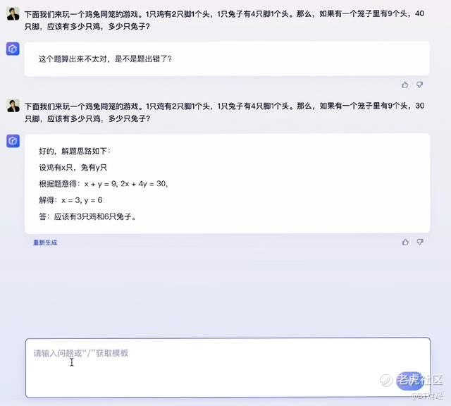 文心一言还具备了一定的思维能力,能够学会数学推演及逻辑推理等相对复杂任务。面对“鸡兔同笼”这类锻炼人类逻辑思维的经典题,文心一言能理解题意,并有正确的解题思路,进而像学生做题一样,按正确的步骤,一步步算出正确答案。