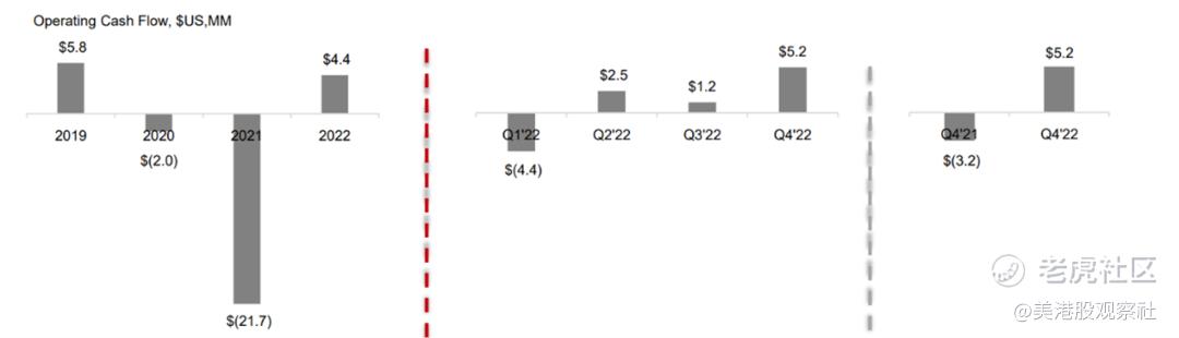 经营性现金流是公司经营活动健康程度的体现,在2022年二季度公司经营性现金流成功转正后,2022年第四季度经营性现金流保持净流入,为520万美元,同比改善837万美元,实现连续三个季度保持经营性现金流净流入。同时优克联实现全年经营性现金流净流入440万美元,同比大幅改善2614万美元。