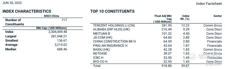 三、MSCI中国指数:包含在MSCI新兴市场指数中,涵盖A/B/H/Red/P股和中概股