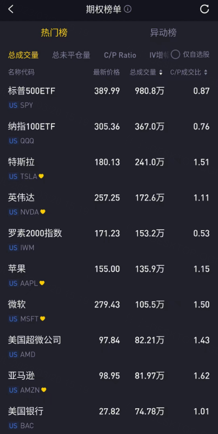 期权成交总量TOP10