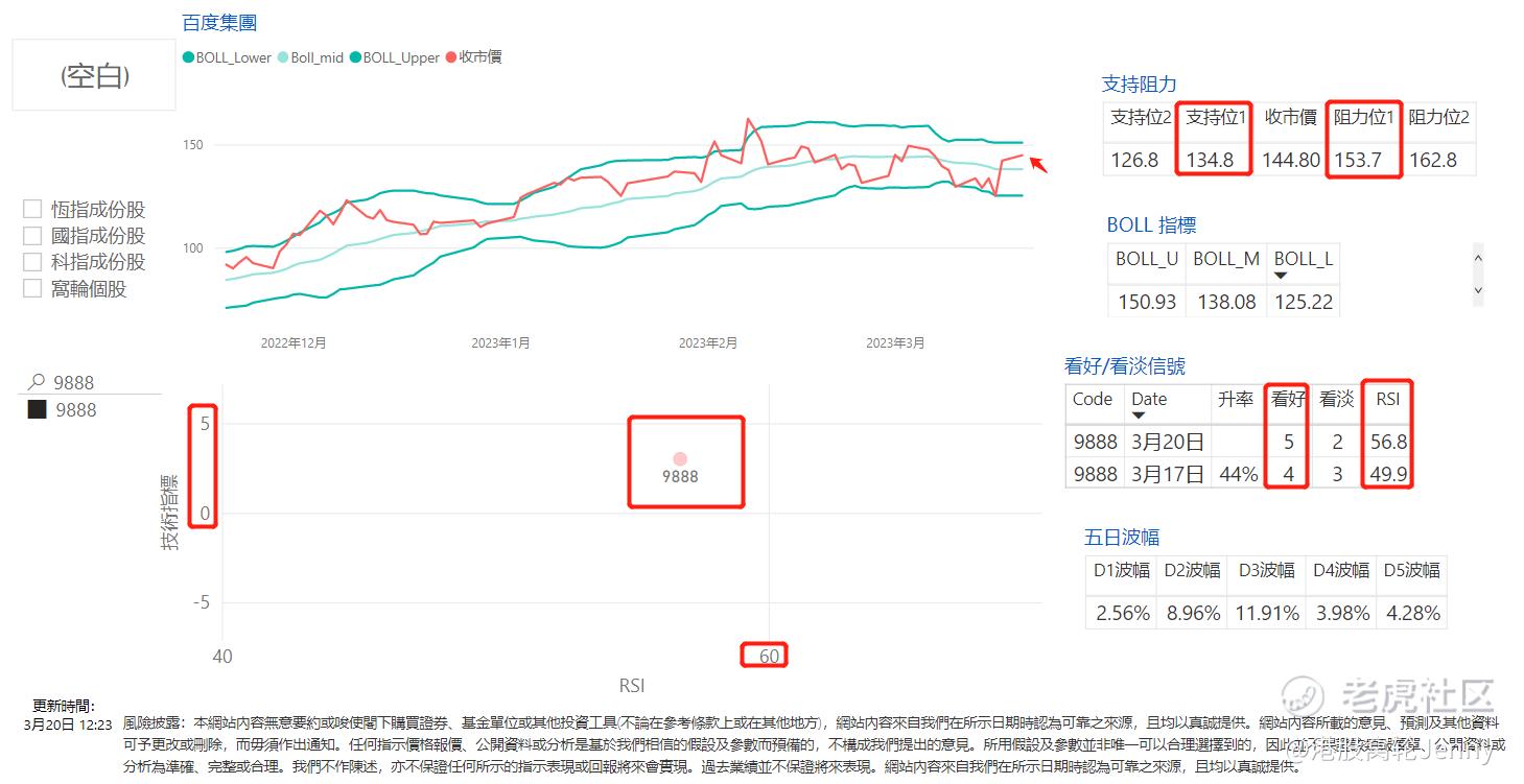 根据技术指标分析,百度集团看好指标占多;相对强弱指数 RSI 数值为57,前值50,数值反映当前位于强势,出现上涨概率相对较大。目前位于保利加通道的上通道。预计支持位位于134.8元,阻力位在153.7。