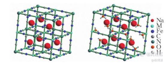 普鲁士蓝类化合物制备过程中存在缺陷结构(右图)