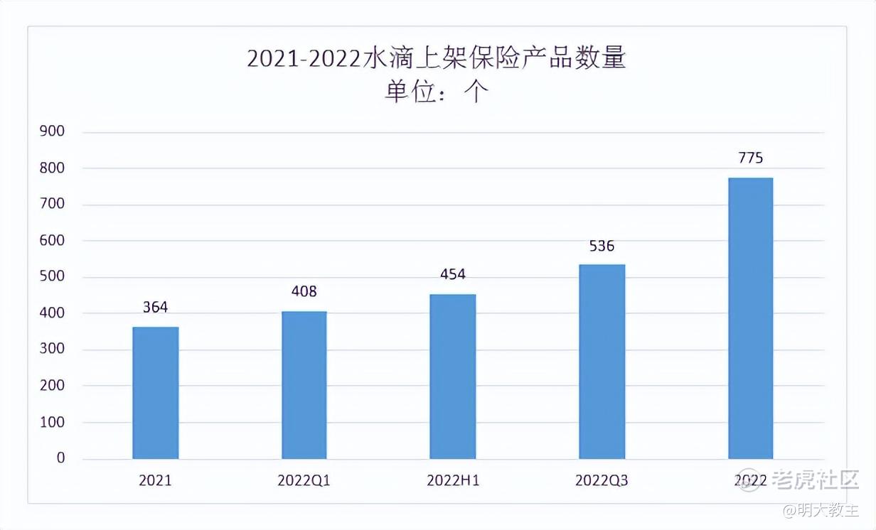 产品数量方面,2022下半年起,水滴平台上架保险产品数量明显增加。仅Q4单季就增长了239款产品,增幅创历史新高。