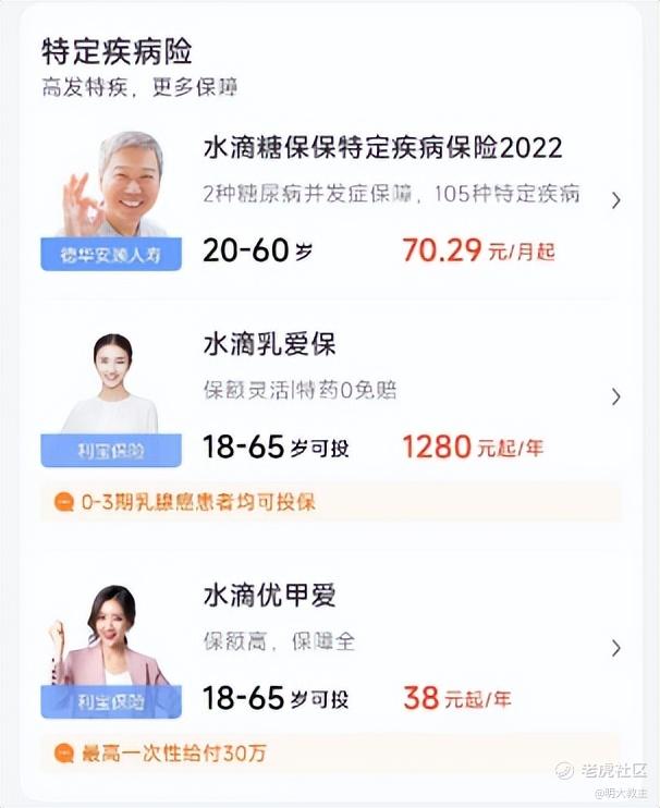 水滴已有针对糖尿病及其并发症的“水滴糖保”特疾险。