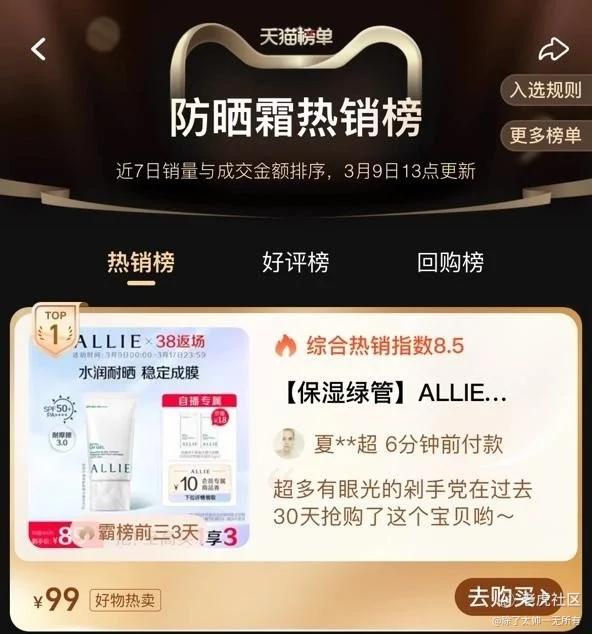 热卖超140000支 ALLIE皑丽荣登天猫热销榜单TOP1