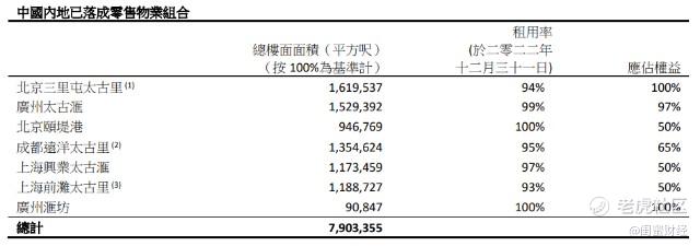 上海兴业太古汇零售销售额下跌36%、租金收入总额下跌17%;上海前滩太古里2021年9月正式开业,2022年的零售销售额和租金收入蜜妹没有在财报里看到。