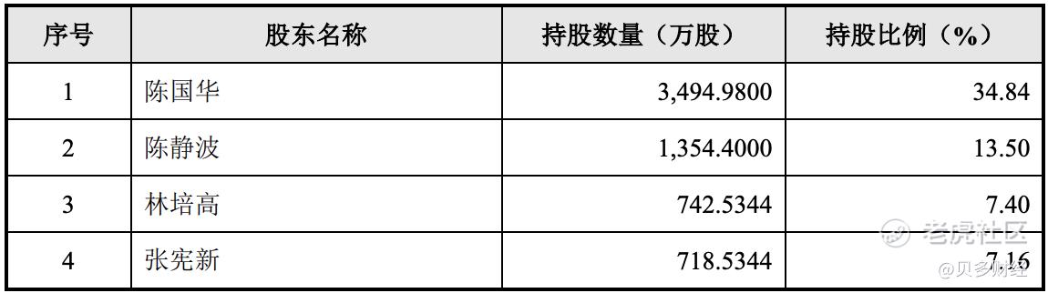 另外,林培高持股7.40%,张宪新持股7.16%,张理威持股5.79%,陈绍龙持股4.79%,张宪标持股4.77%,李伟华持股3.52%,周成玉持股2.63%,罗宗举持股2.39%,朴清国持股1.53%,陈冠霖持股1.00%,孙伟杰持股0.96%,叶军持股0.58%。