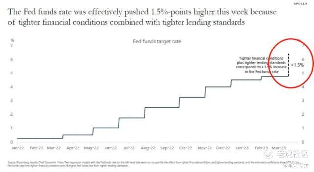 •通过量化金融条件收紧和贷款标准收紧的影响,阿波罗首席经济学家估计过去一周发生的事件相当于美国联邦基金利率上升 1.5%。
