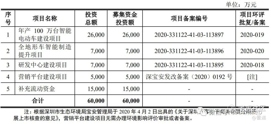 涛涛车业原计划募资6亿,其中,2.6亿用于年产100万台智能电动车建设项目,7000万元用于全地形车智能制造提升项目,7000万元用于研发中心建设项目,5000万元用于营销平台建设项目,1.5亿元用于补充流动资金。