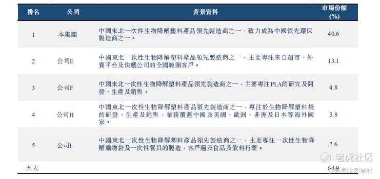 中宝新材成立于2014年,在行业中具有较高的知名度和专业度。中宝新材及其CEO单玉柱先生曾参与讨论及制定生物降解塑料购物袋的唯一国家标准「 GB/T 38082-2019」,该标准于2019年10月颁布,并于2020年5月生效。于最后可行日期,中宝新材在中国持有28项实用新型专利、2项发明专利、3项注册商标,正在申请2项专利。中宝新材还是中国东北领先的生物降解塑料产品生产商,在该地区占有较高的市场份额。根据弗若斯特沙利文报告,2021年,中宝新材在中国东北的生物降解塑料产品生产商中排名第一,按2021年生物降解塑料产品销售收益计算,中宝新材在中国东北所有一次性生物降解塑料产品制造商中排名第一,市场份额为29.6%。在中国东北一次性生物降解购物袋市场,中宝新材的市场份额更高,按照2021年一次性生物降解购物袋销售收益计算,中宝新材的市场份额达到40.6%。