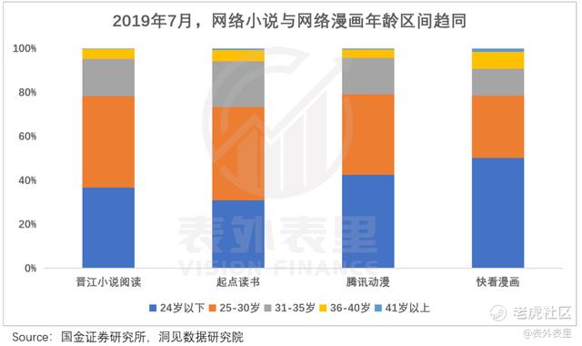 一般来说,网文用户与动漫用户的重合度极高,且是性别、年龄、兴趣爱好等各个维度的契合。如下图,小说和网文的年轻人基本盘几乎一样。