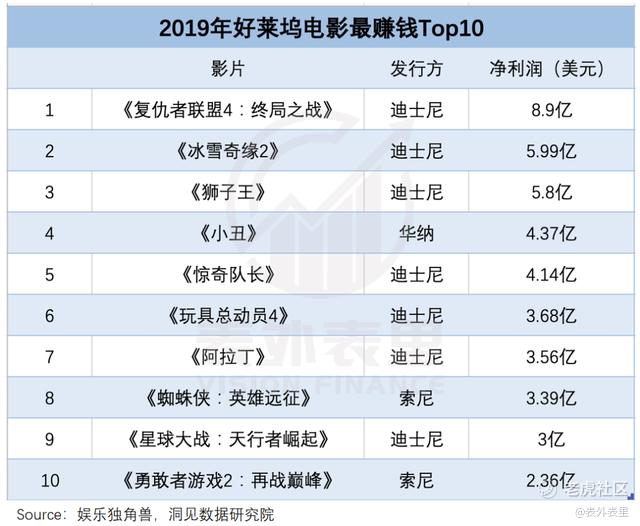 举例来说,2019年好莱坞最赚钱的电影Top10里,迪士尼的IP改编或者续集电影占了7席。