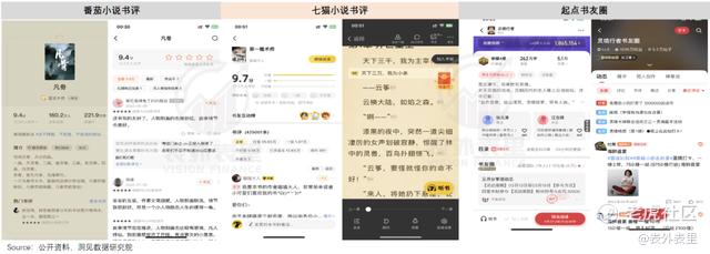 可以看到,番茄等平台,都开设有书评栏目,但仅限于读者单向评论。