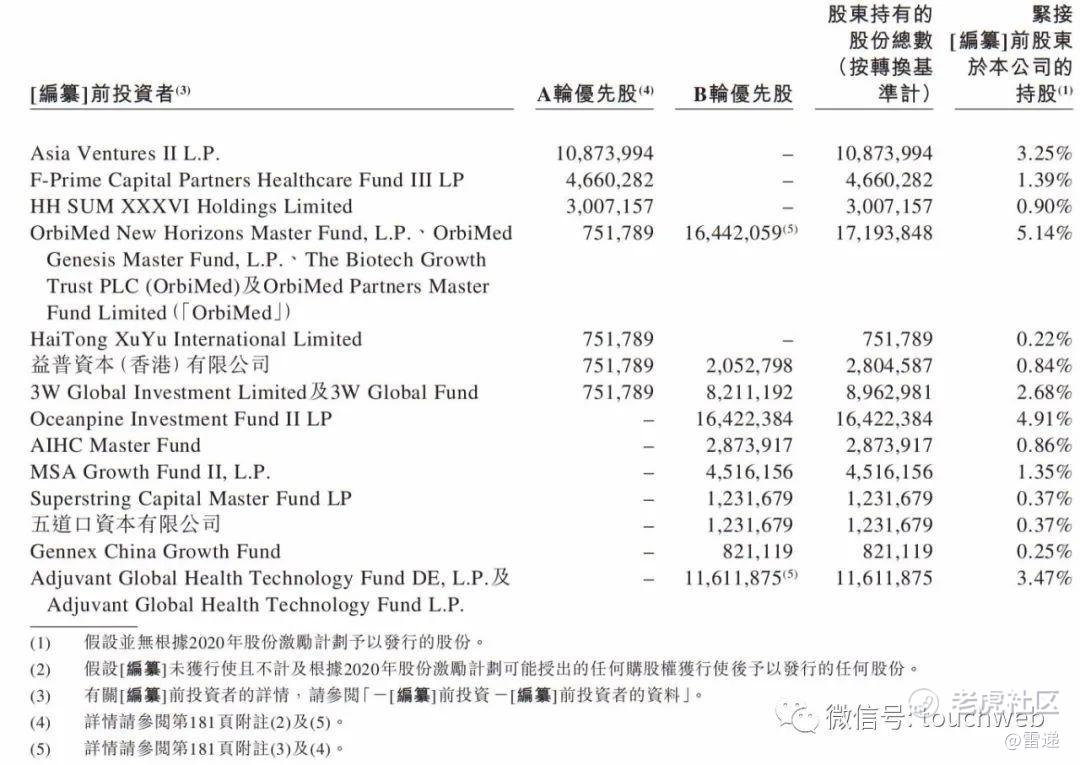 其中,OrbiMed持股为5.14%,Asia Ventures II L.P持股为3.25%,Oceanpine持股为4.91%,3W资本持股为2.68%。