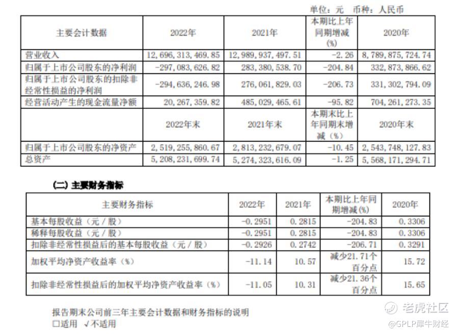 【安泰集团2022年净亏损2.97亿元】3月17日晚,安泰集团公布了2022年年报。报告显示,其2022年营业收入约126.96亿元,同比减少2.26%;归母净利润亏损约2.97亿元,同比由盈转亏,降幅达到204.84%。数据显示,2022年安泰集团焦炭产品的毛利率为1.93%,同比减少了5.18个百分点;型钢产品的毛利率为-0.57%,同比减少了3.52个百分点。(安泰集团公告)