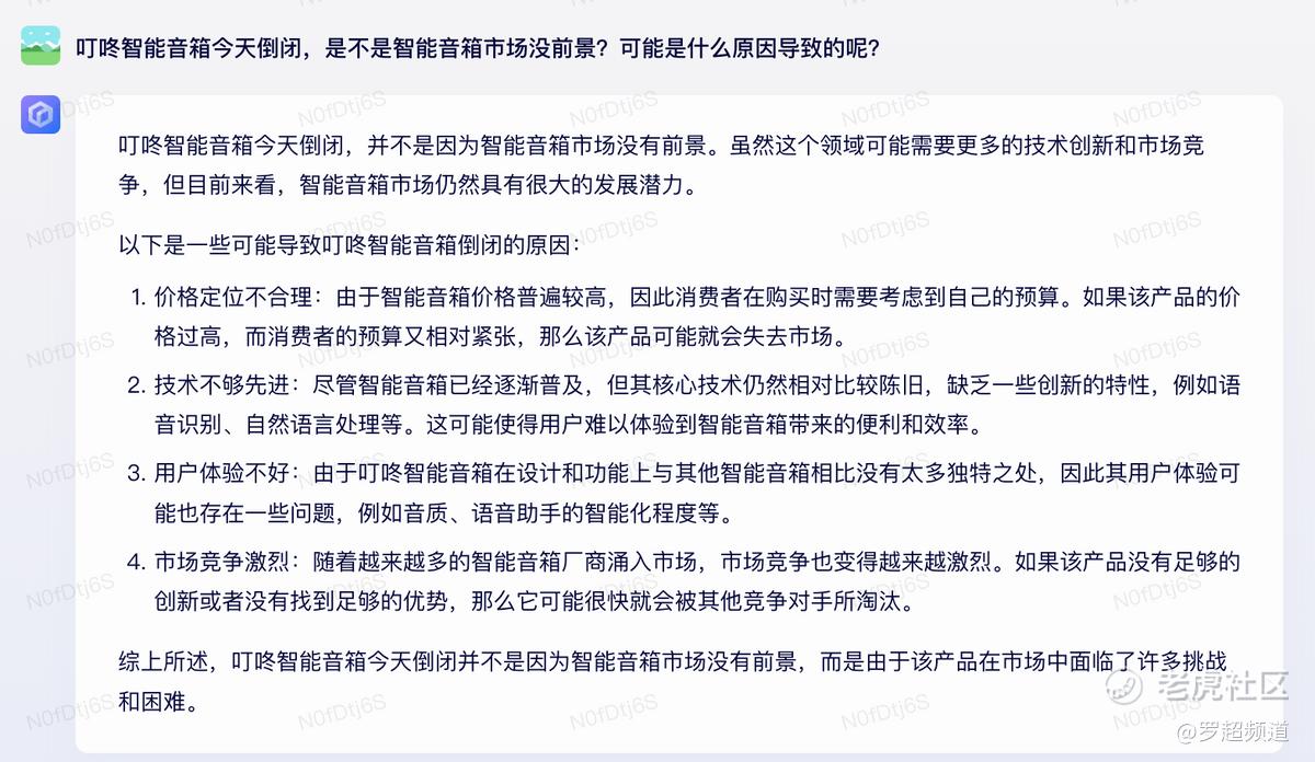 3月17日,第一批智能音箱创业公司叮咚智能音箱宣布停止服务,对此,文心一言也有自己的见解,同时还强调,不是不看好智能音箱市场: