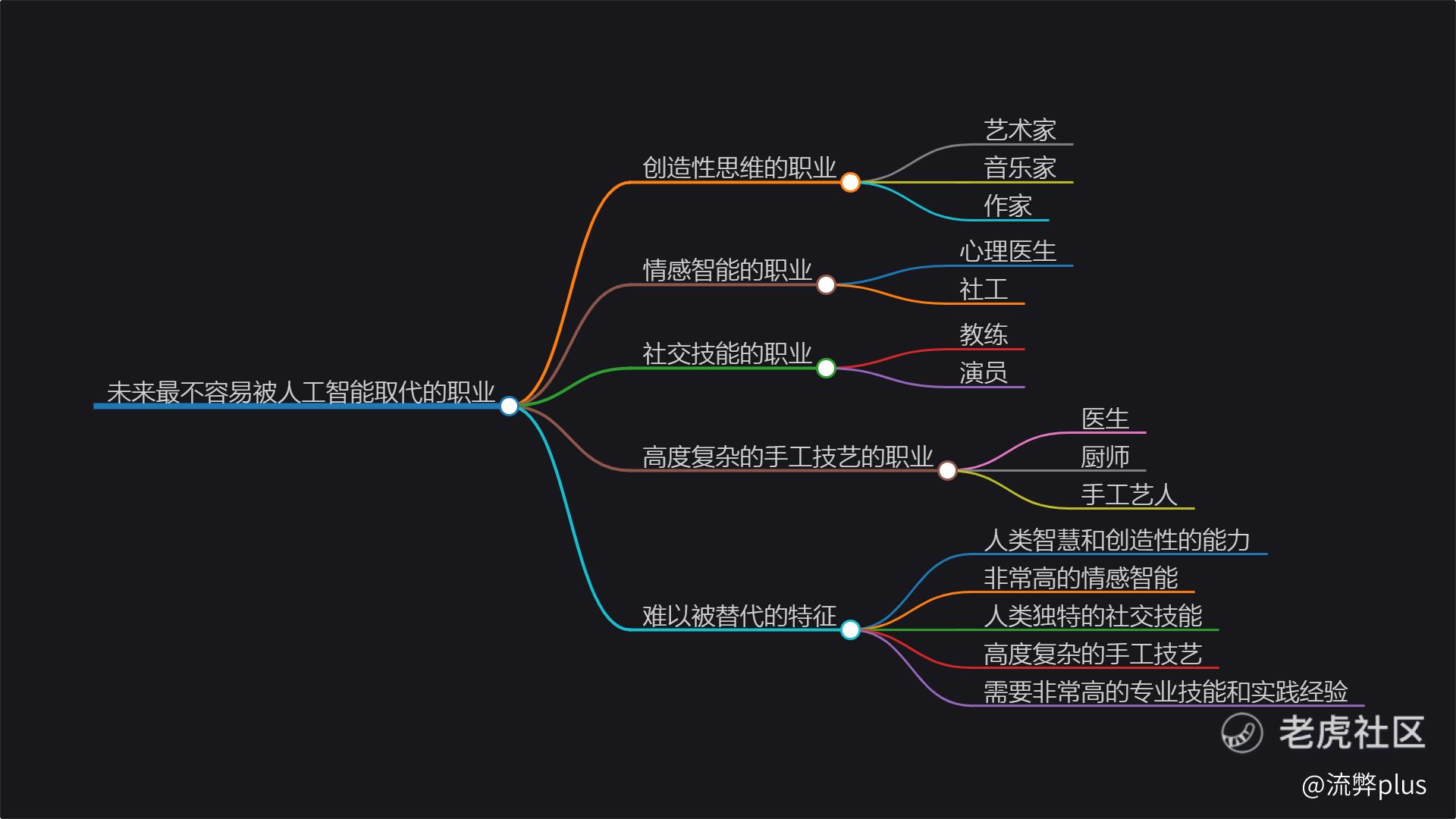 创造性思维的职业:艺术家、音乐家、作家等这些职业,需要进行创造性思维,依靠自己的感受、经验、智慧等进行创作。这些工作需要非常高的人类智慧和创造性的能力,是人类与众不同的优势,难以被人工智能完全替代。