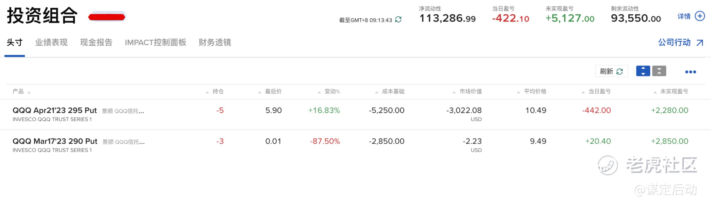 因为需要抽走一部分资金他用,按照纪律,我在3月16日提前平仓了9手行权价为300的SP,然后又卖出了5手行权价为295的看跌期权,之后会根据资金情况加仓或者减仓。