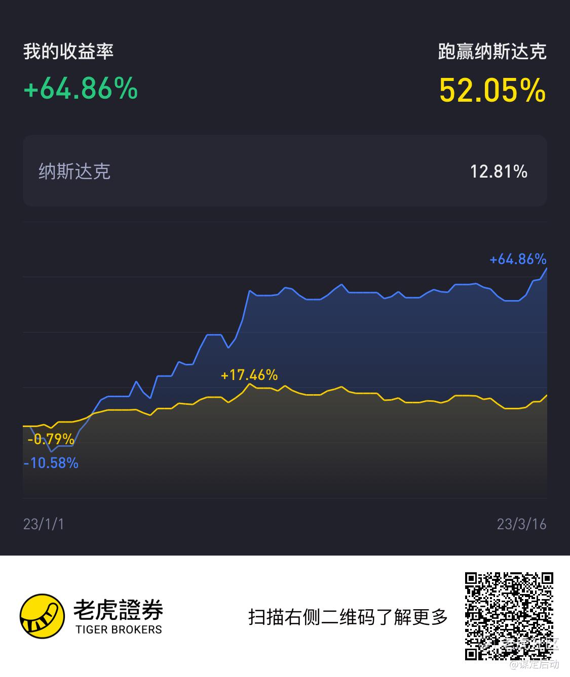 今年以来,我的账户收益率是64%,跑赢纳指的12%。