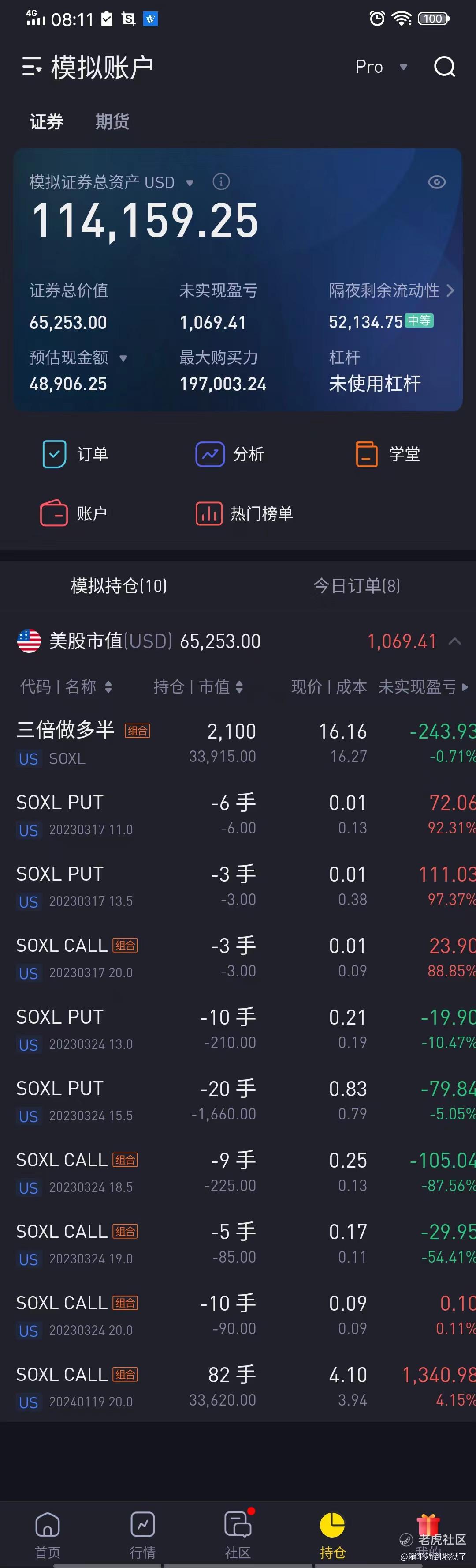 一、正股看涨策略:SOXL正股21手。