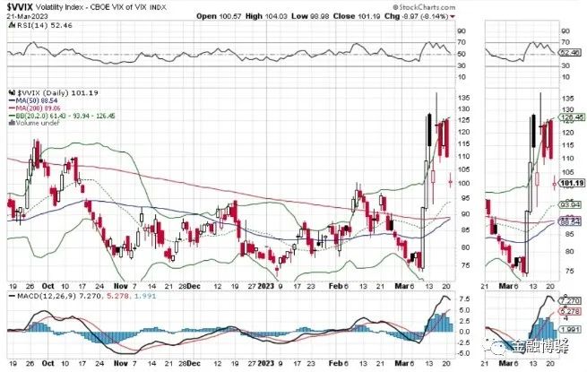 VVIX大跳空低开,小幅震荡一天,收红小阳线。
