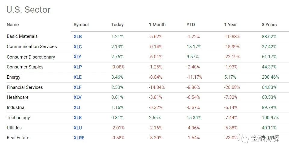 (1)美股板块涨跌幅