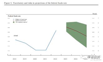 反映官员利率意见的“点阵图”支持美联储加息周期接近尾声的观点。官员们的中位数预期依旧是2023年美国峰值利率为5.1%,与去年12月的预期持平。预测显示,美联储可能只有空间再加息一次,且加息25个基点。然而,对未来两年的点阵图预期显示出官员们之间存在相当大的分歧。