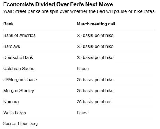 智通财经APP获悉,美联储将于北京时间3月23日(周四)凌晨公布利率决议和经济预期摘要,随后美联储主席鲍威尔召开货币政策新闻发布会。虽然大多数经济学家预计美联储将加息25个基点,但一些人表示,政策制定者应该暂停加息,以维护金融稳定。