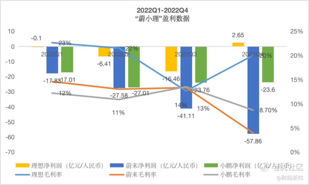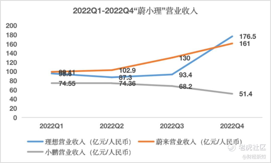 三月财报季逐渐进入尾声,造车新势力中的“三小强”蔚来、小鹏、理想汽车(以下简称“蔚小理”)都纷纷发布了2022年第四季度和全年未经审核的财务数据。