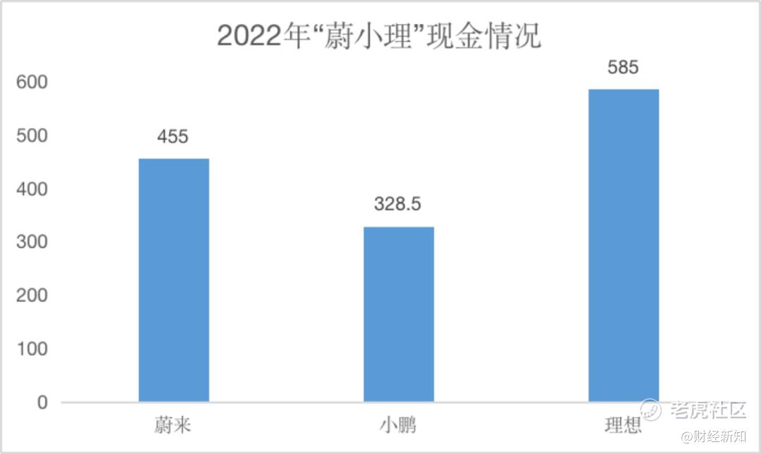 从现金流的情况来看,目前蔚小理的现金储备都比较充足。2022年底,蔚小理现金、现金等价物总值基本都超过了自己年亏损的三倍以上。