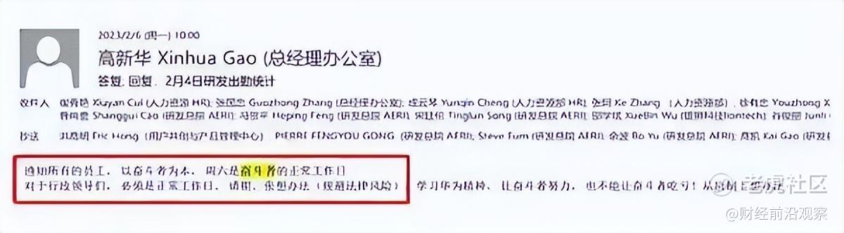 然后看不懂的操作就来了,今年3月7日,奇瑞汽车一封内部邮件遭到曝光,内容很简单,奇瑞汽车的高管在2月6日通知所有员工,“学习华为精神”“从机制上想办法”,将周六也视作正常工作日。
