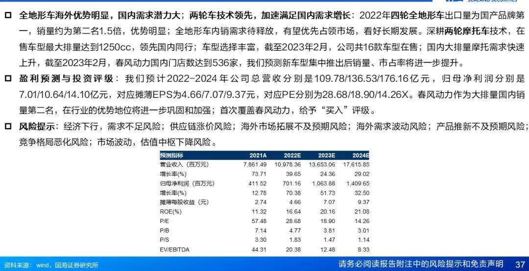 4.1重点关注公司及盈利预测:春风动力(首次覆盖)